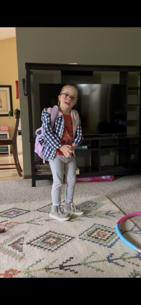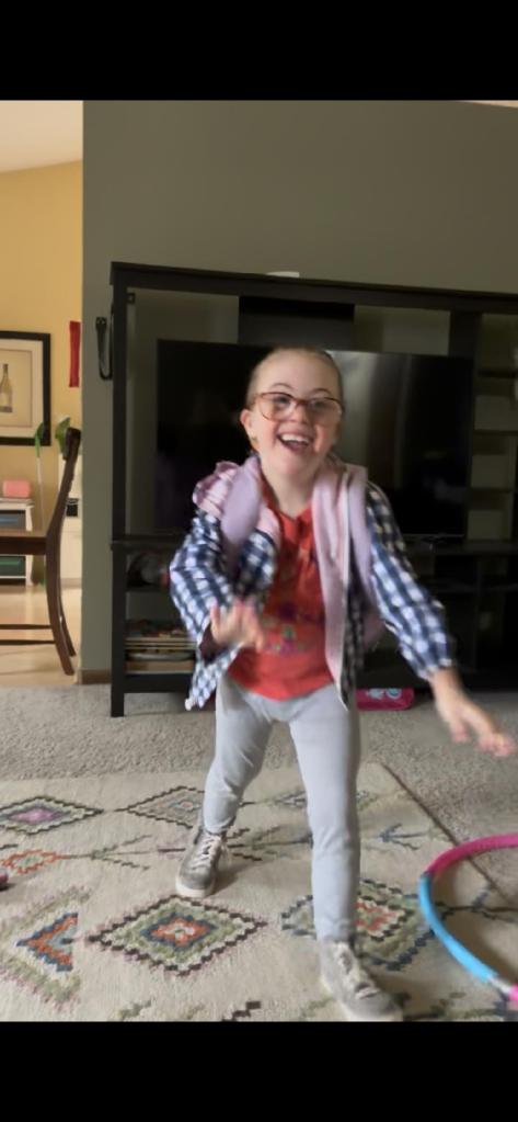 Joy is hula-hooping now, and she is very good at it.